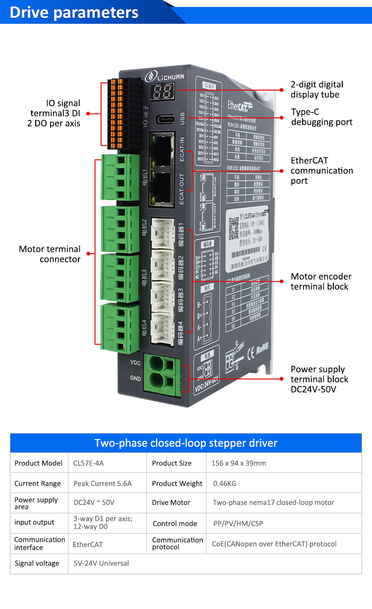 ایتھرکاٹ 2 فیز NEMA24 2 محور ڈی سی بند لوپ اسٹپر موٹر ڈرائیور کٹ