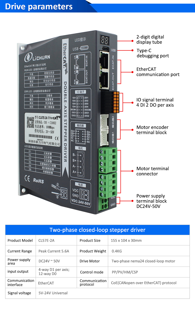 ایتھرکاٹ 2 فیز NEMA23 2 محور ڈی سی بند لوپ اسٹیپر موٹر ڈرائیور کٹ