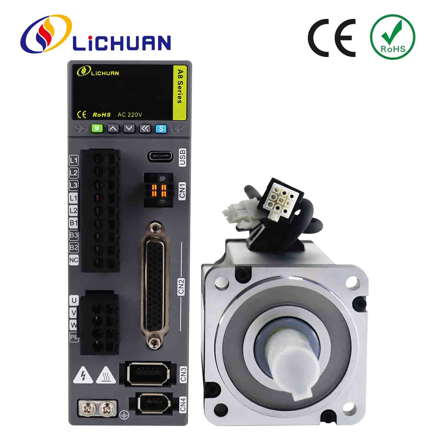 Lichuan AC سروو موٹر ڈرائیور کٹ A8 اعلی درستگی STO ABZ 200W 0.637N.m 220V 1.6A 3000RPM IP65
