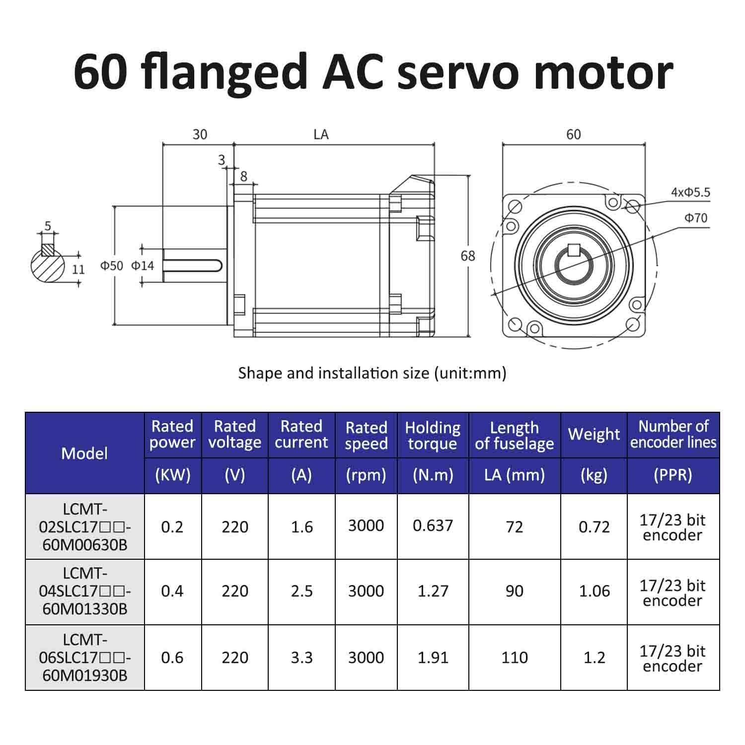 | موٹر ماڈل | LCMT-02SLC17-60M00630B | LCMT-04SLC17-60M01330B | LCMT-06SLC17-60M01930B |