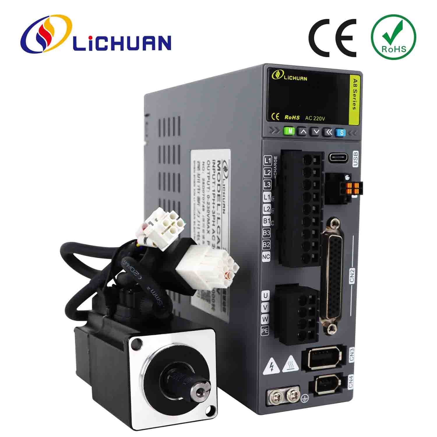 Lichuan AC سروو موٹر ڈرائیور کٹ A8 اعلی درستگی STO ABZ 1000W 1KW 3.2N.m 220V 5.8A 2500/3000RPM IP65